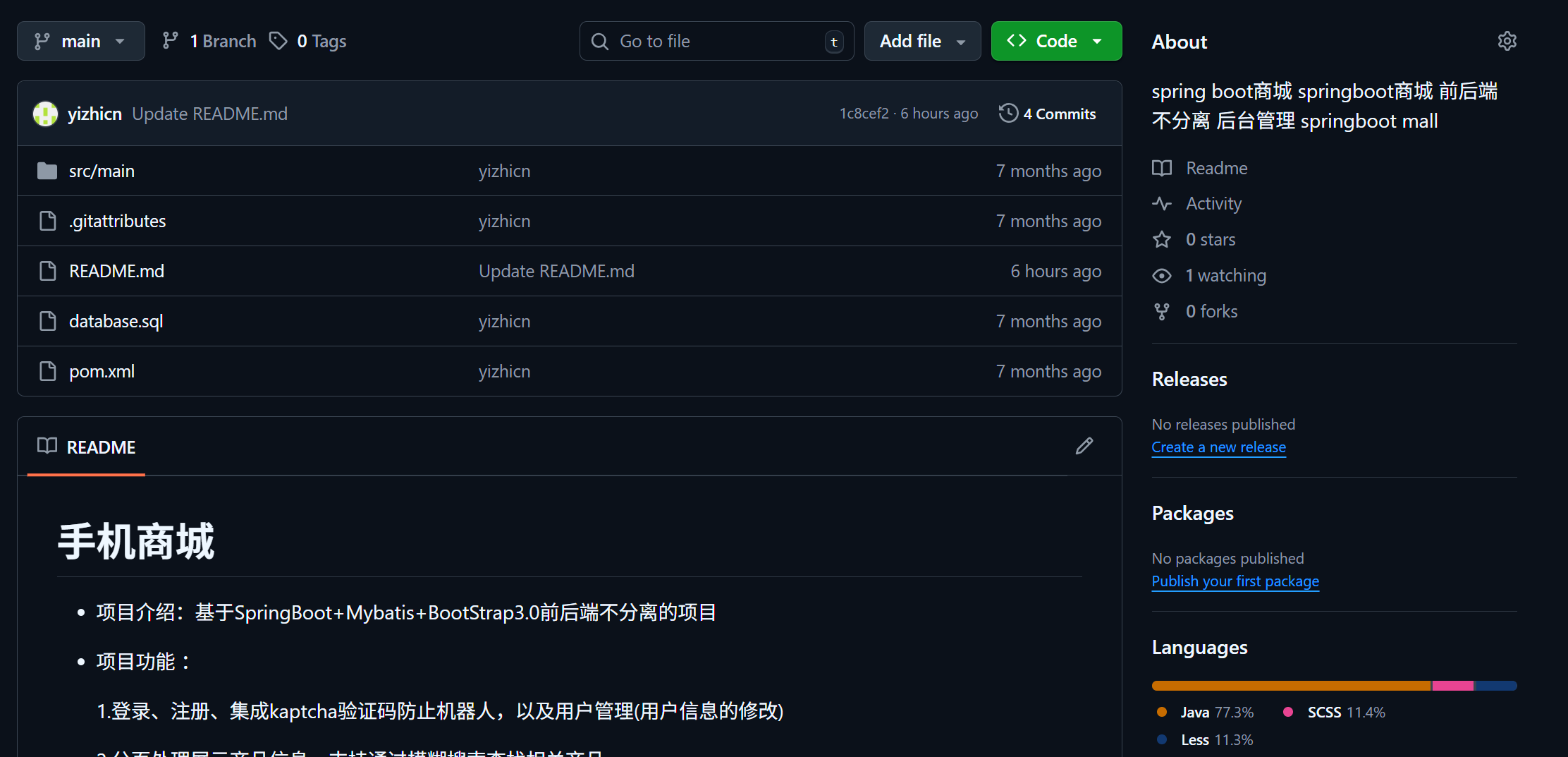 yizhicn/phonestore: spring boot商城 springboot商城 前后端不分离 后台管理 springboot mall