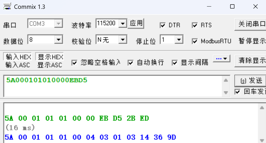 用串口软件发送相同指令后返回正常